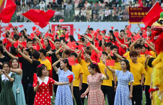 飞扬的旗舞,鼓震锣鸣的舞狮,刚柔并济的武术,德礼并蓄的箭术,传承中华民族团结奋斗、奋勇拼搏的豪迈精神。舞动青春忆初心,砥砺前行逐梦想,学子们用舞蹈和歌声表达着对祖国的热爱。
